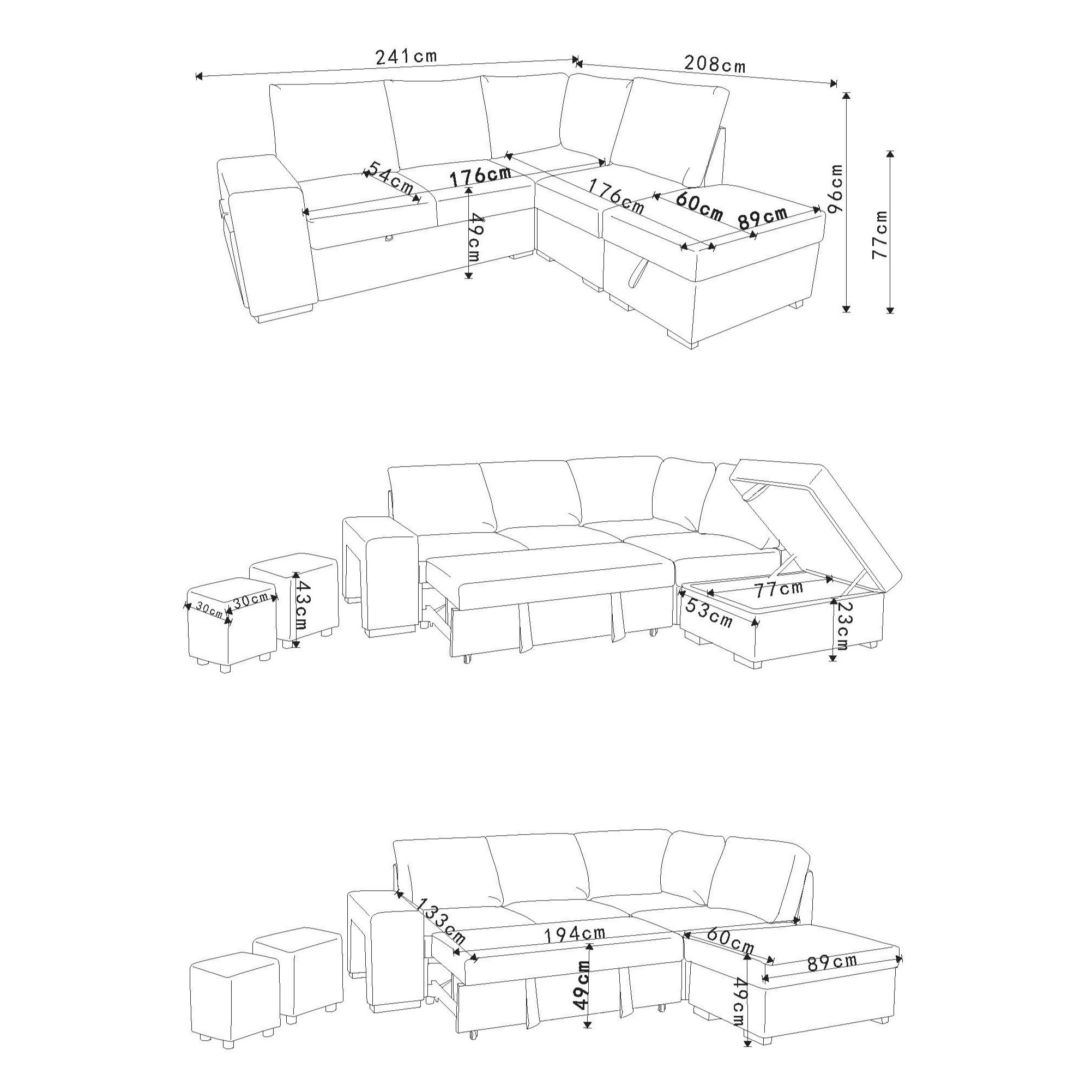 Avec ses dimensions généreuses de longueur 241 cm x profondeur 208 cm, ce canapé 3 places est idéal pour accueillir famille et amis.