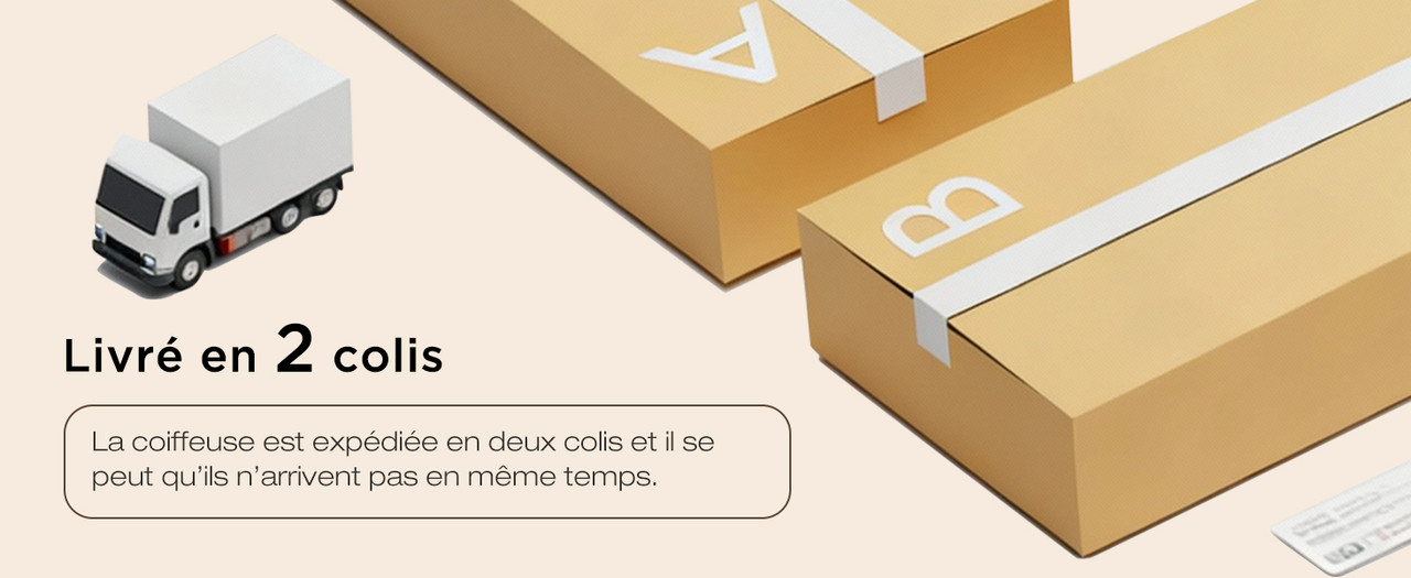 L’article est livré en 2 colis. Si vous ne recevez qu’un colis, le second arrivera sous 3 jours ouvrables.