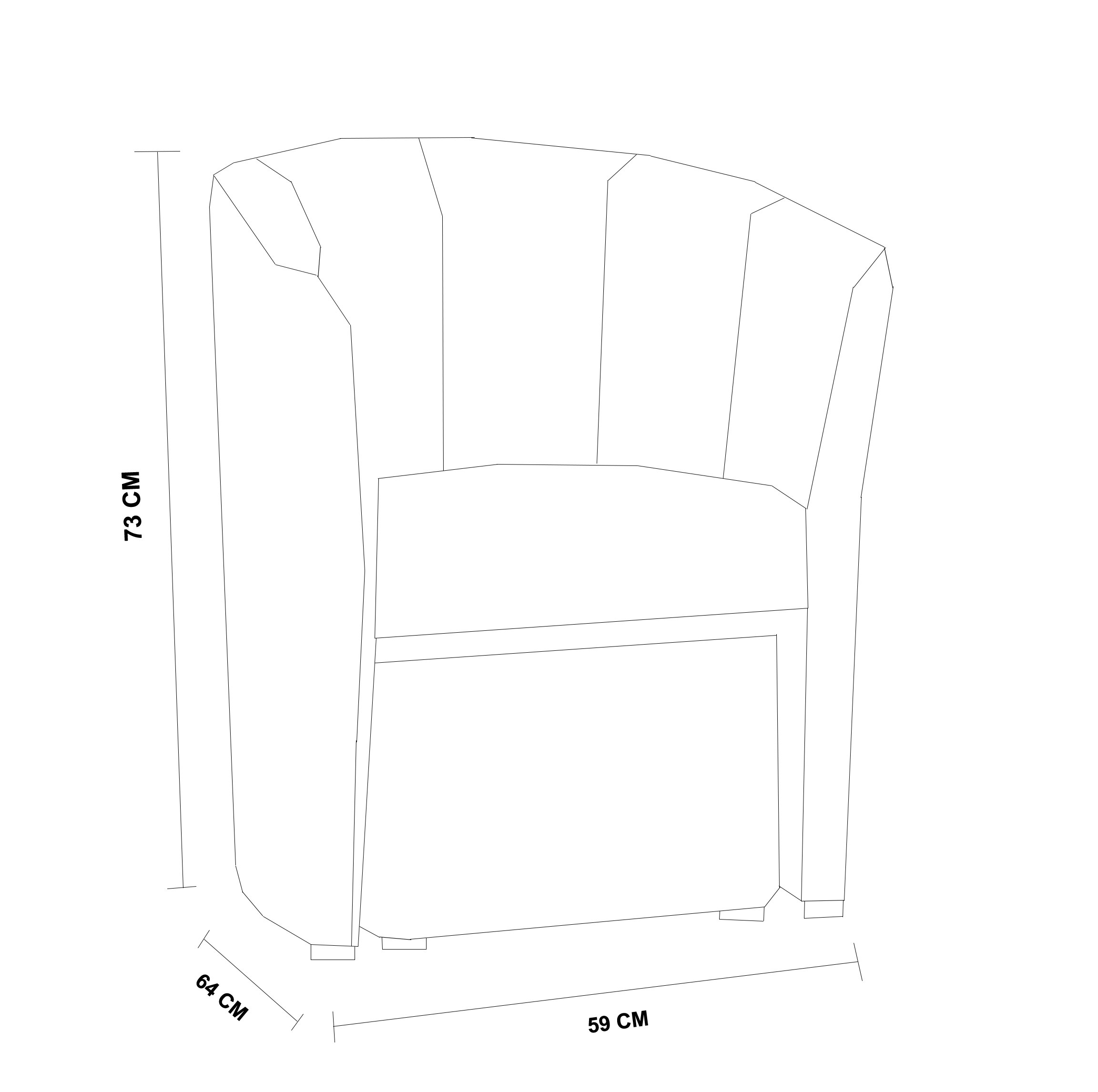 Ce fauteuil, aux dimensions compactes de longueur 59 cm, hauteur 73 cm et profondeur 64 cm, est idéal pour les petits espaces comme un studio ou un salon cosy.