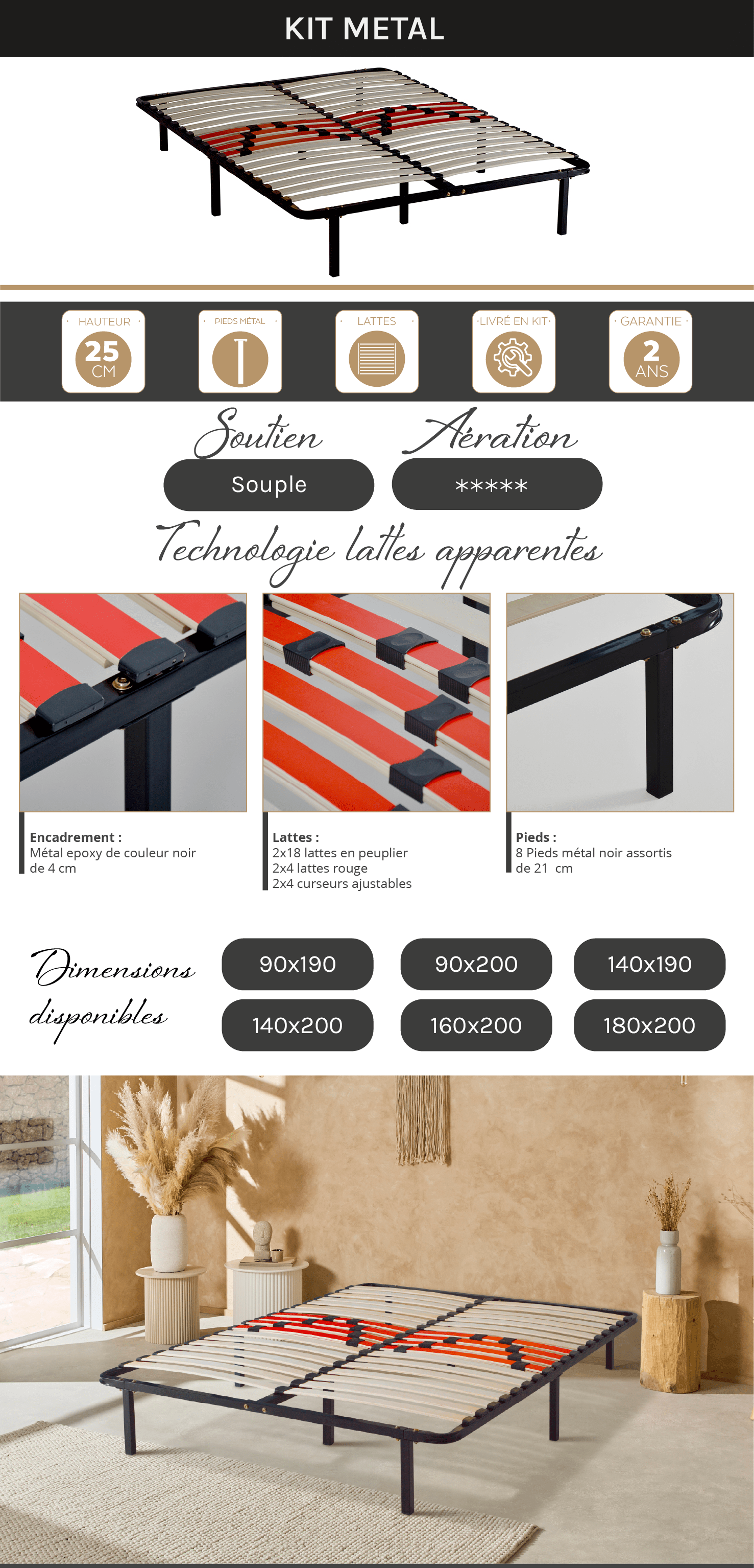 Hauteur du sommier : 25 cm